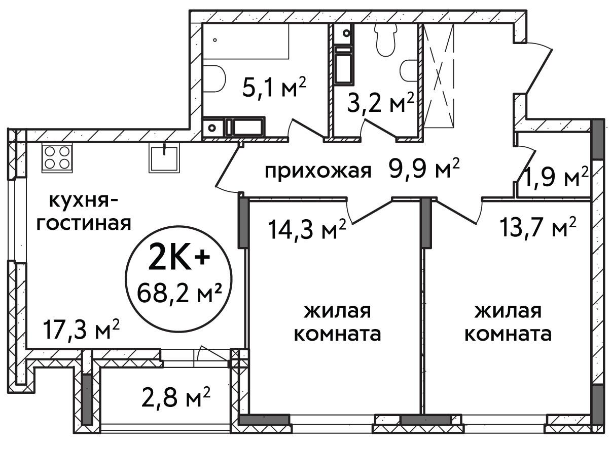 Общая площадь 68.2 м2