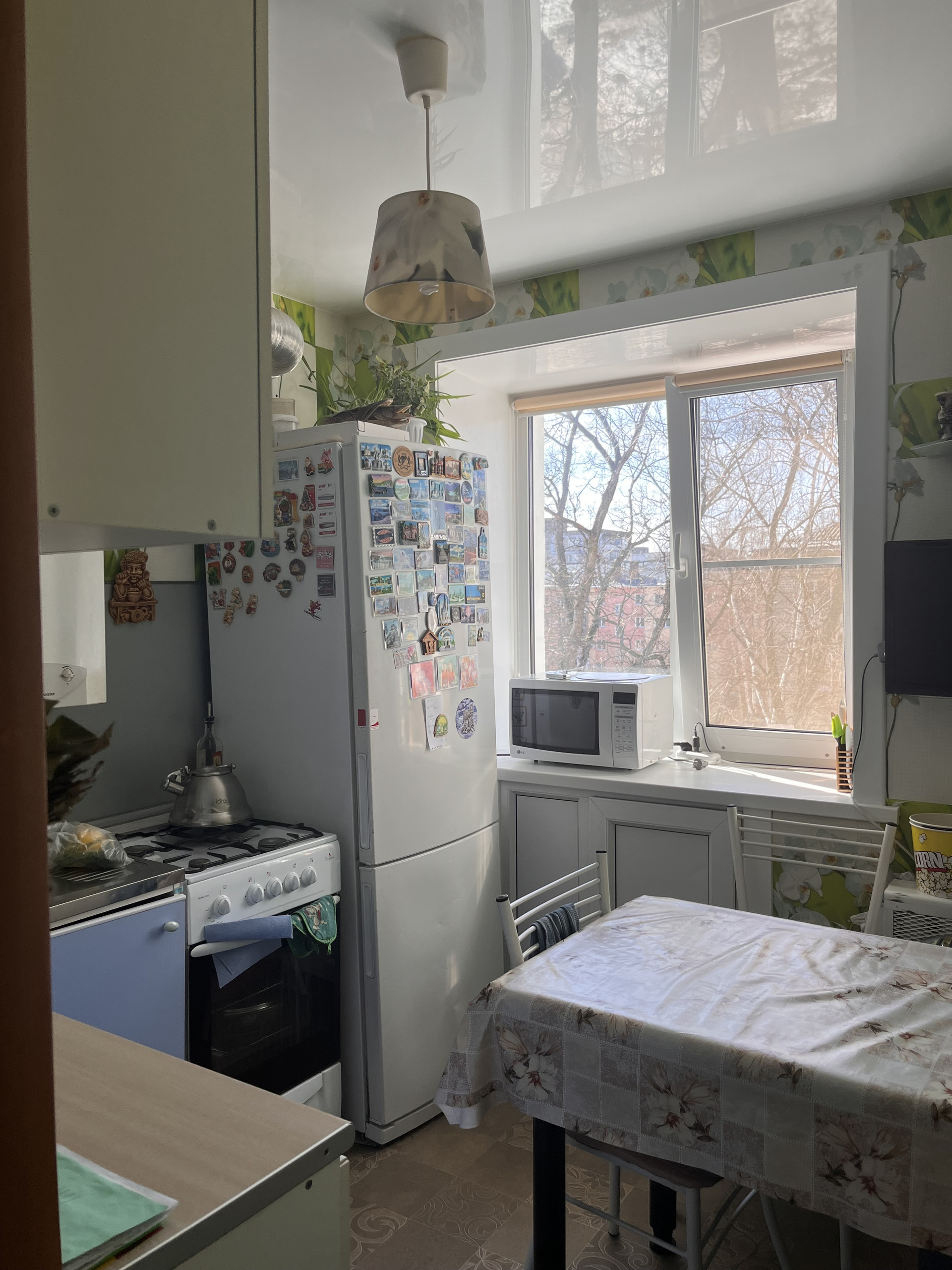 Санузел просторный ,совмещен, колонка автомат ,кухонный гарнитур остается, под окном дополнительный холодильник, окна все поменяны, потолки во всей квартире натяжные и дополнительно со спотами, прихожая в квартире большая ,также остается мебель в прихожей, в детской комнате  остается угловой шкаф и комод. Квартира не угловая ,светлая и теплая . остается ,2 взрослых собственника, альтернат подобран, документы готовы.