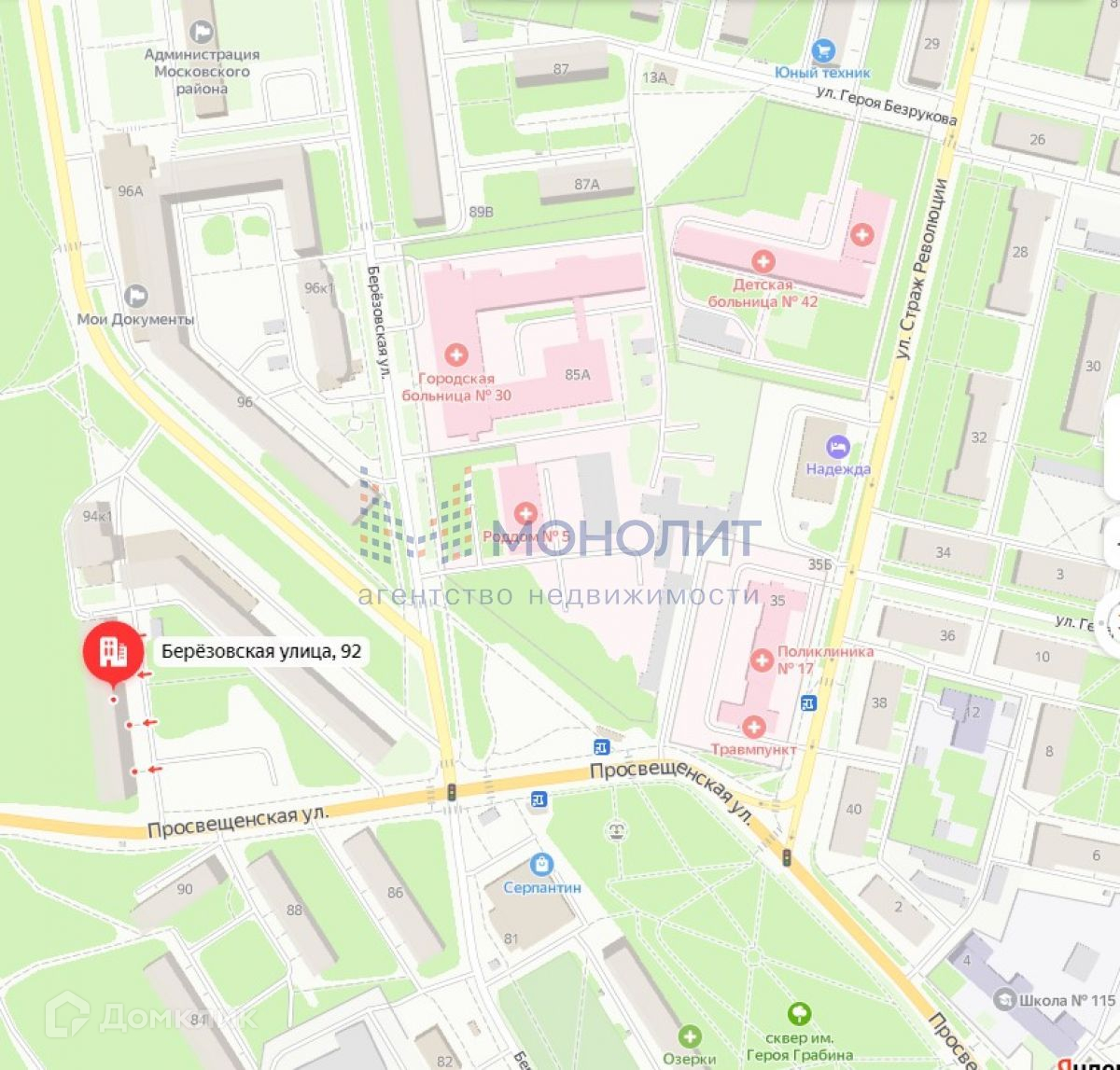Развитая инфраструктура. Рядом с домом школы, детские сады, детская и взрослая больницы и поликлиники, магазины и аптеки.