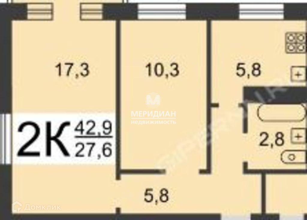 Общая площадь 43 м2