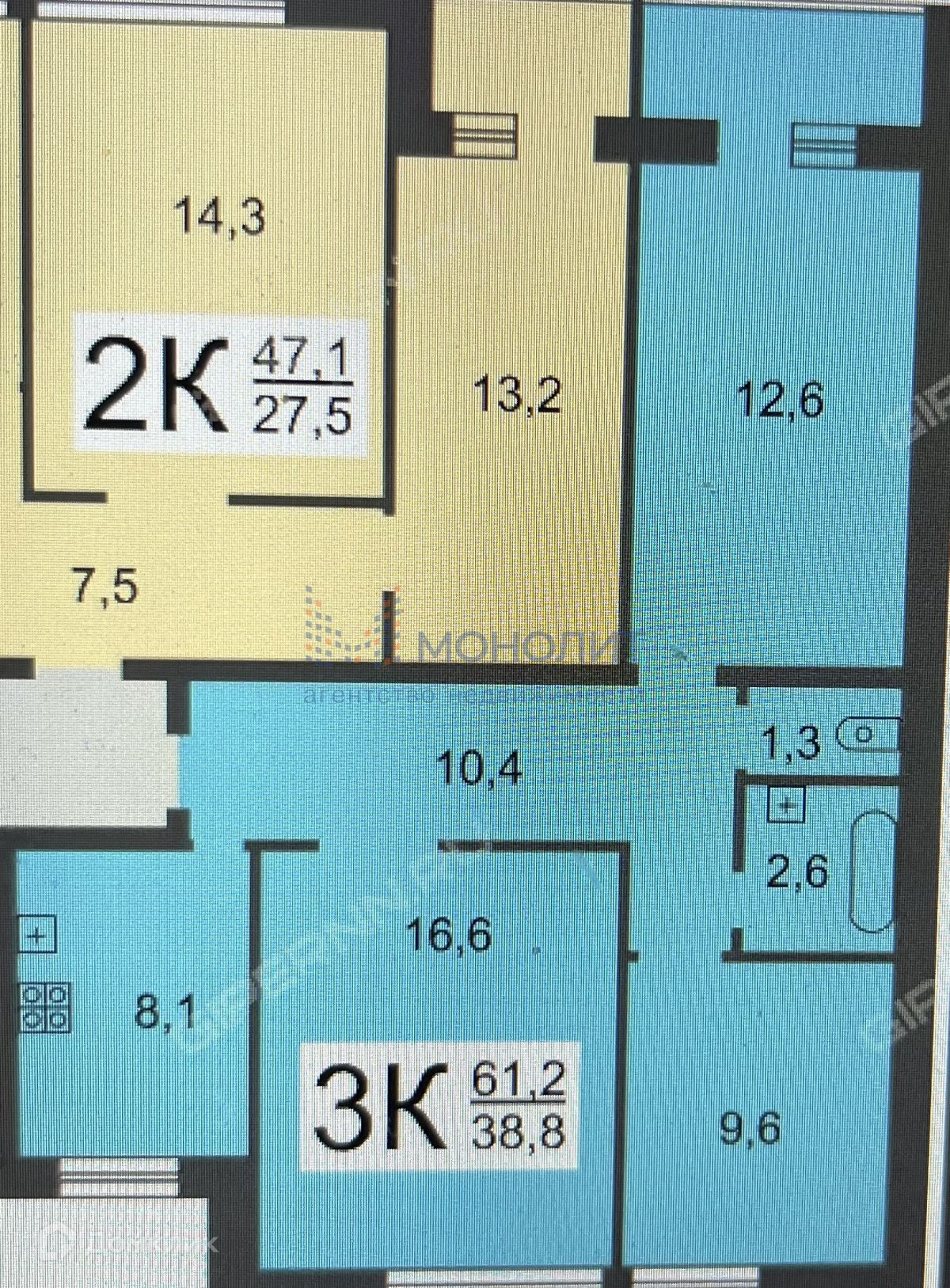 Общая площадь 62.3 м2