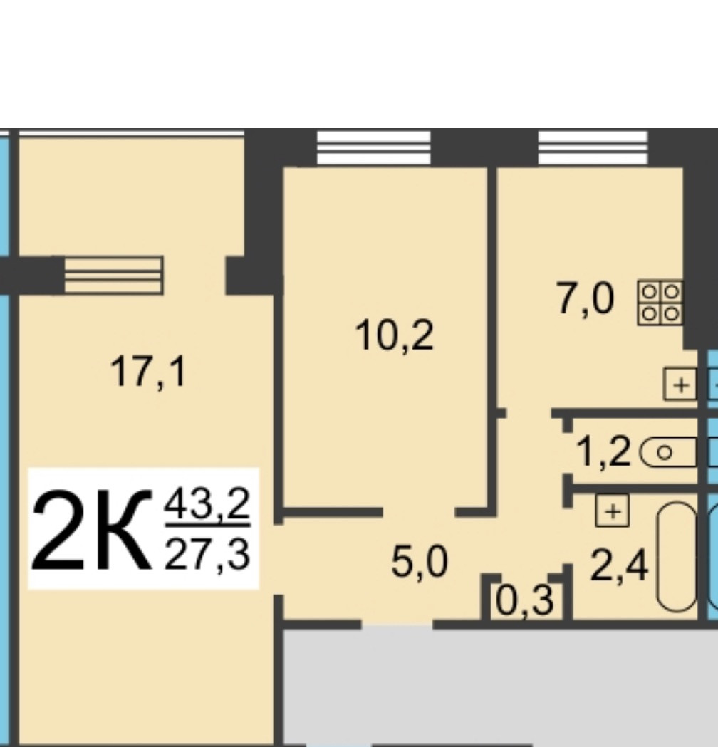 Жилая площадь 27.3 м2