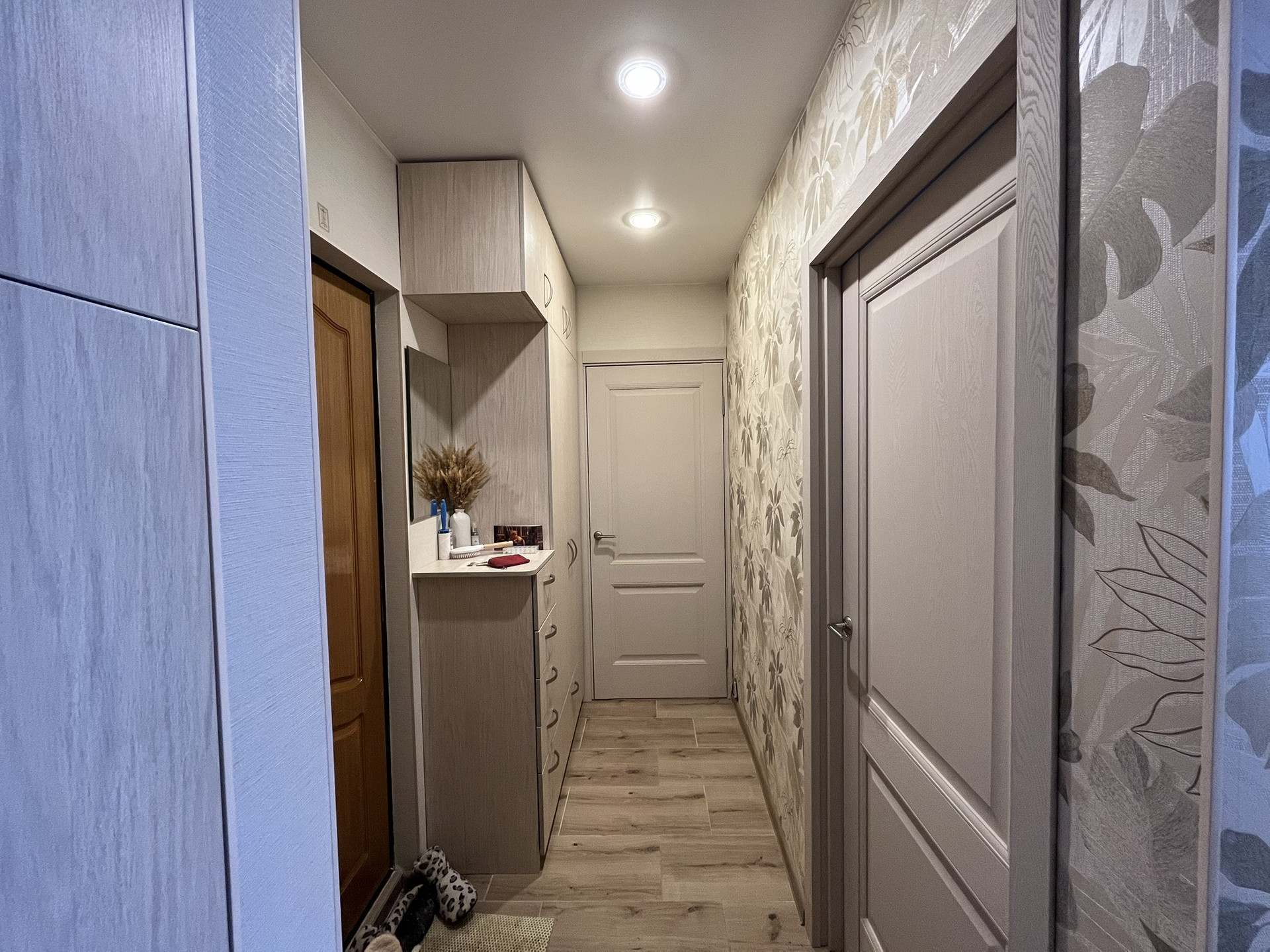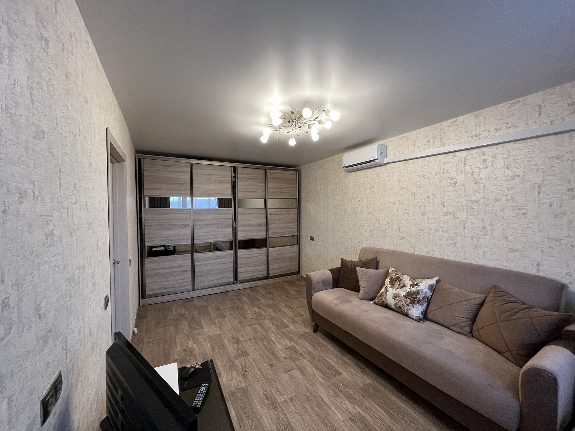 В квартире остаётся вместительный шкаф ,2 шкафа в прихожей .Кондиционер.