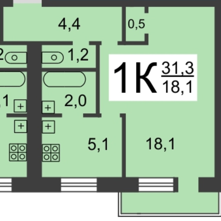 Общая площадь 31.3 м2