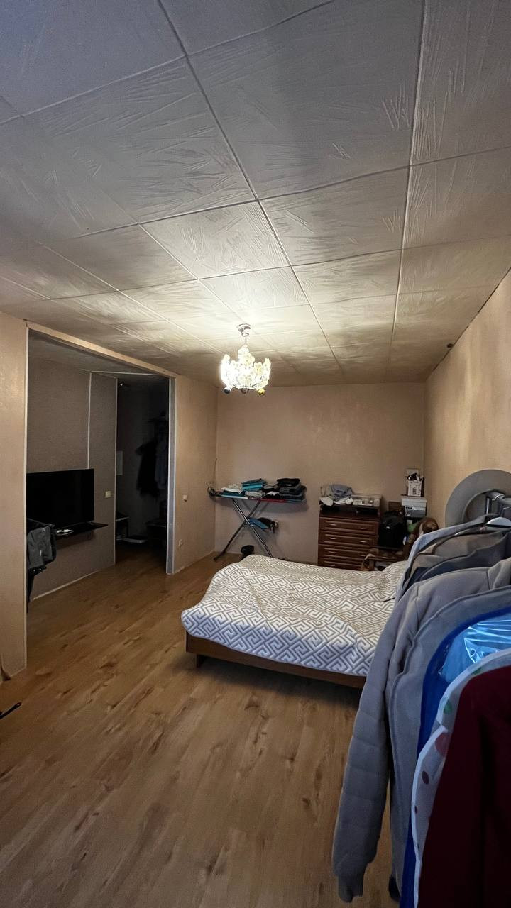 Хорошая транспортная развязка, рядом метро, общественный транспорт, магазины, школа, садик.