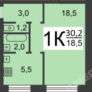 Общая площадь 30.2 м2