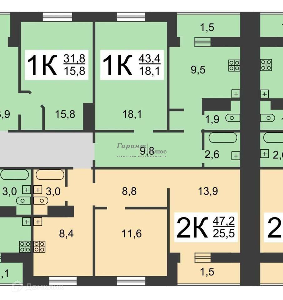 Жилая площадь 25.5 м2
