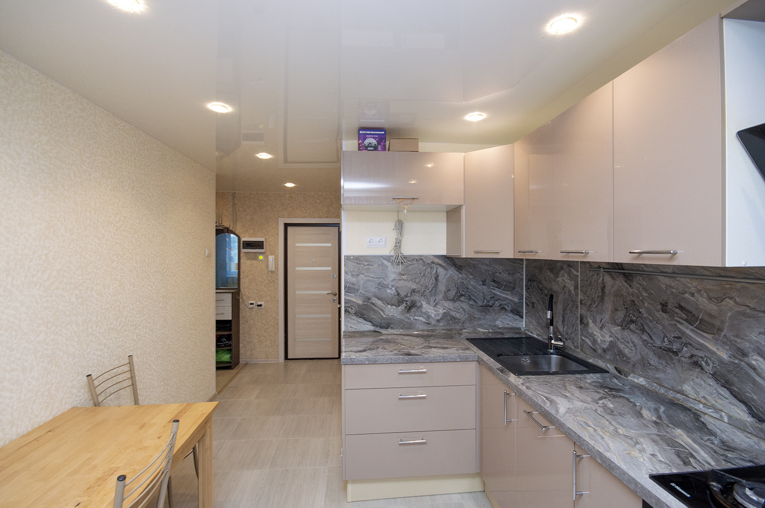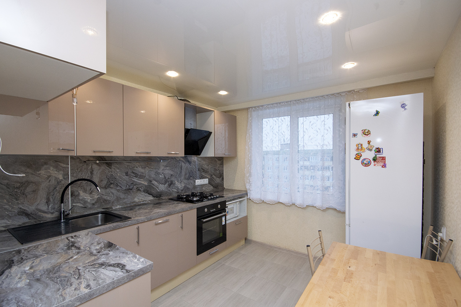 На просторной 10-метровой кухне удобно готовить даже в четыре руки и хватит места для посиделок с друзьями.