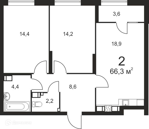 Общая площадь 66.1 м2