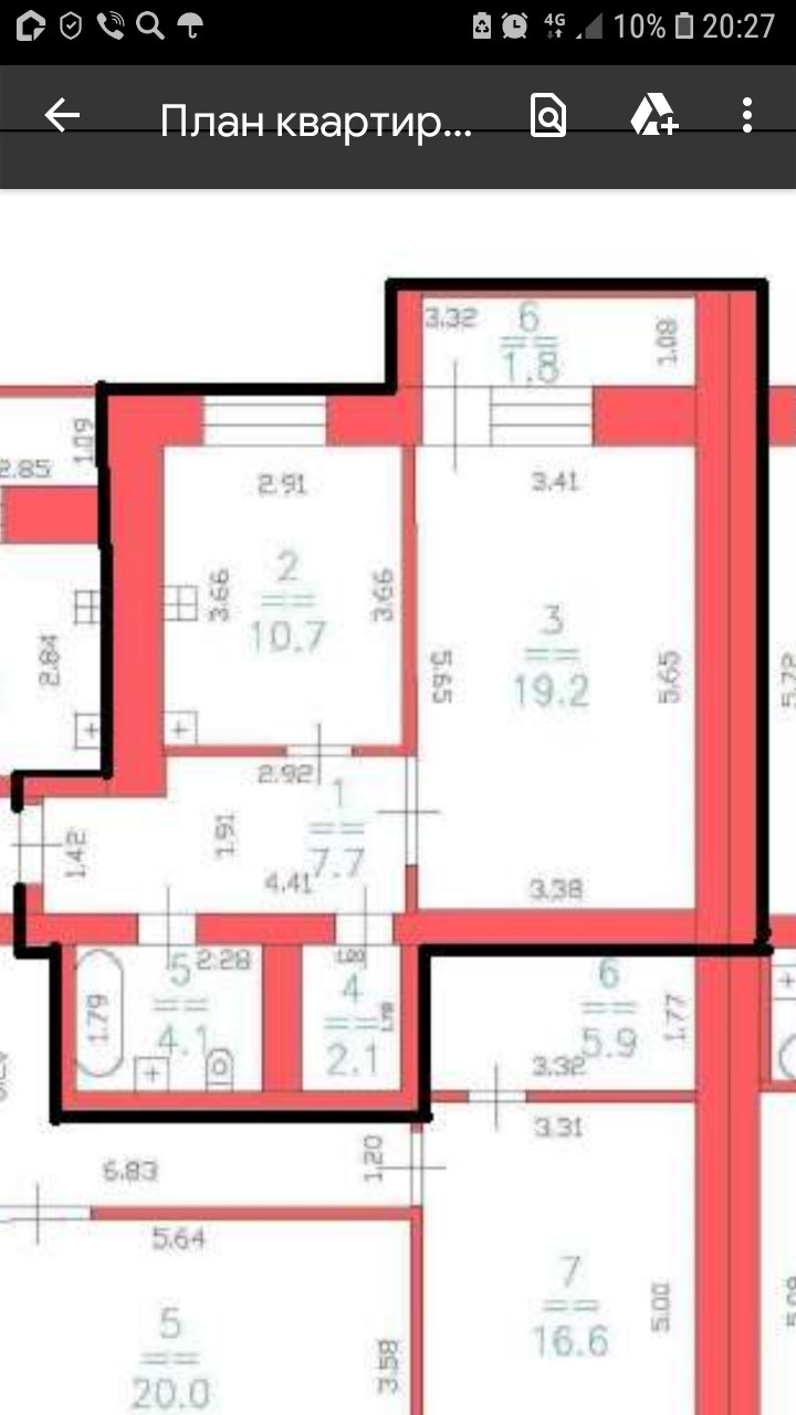 Жилая площадь 19.2 м2