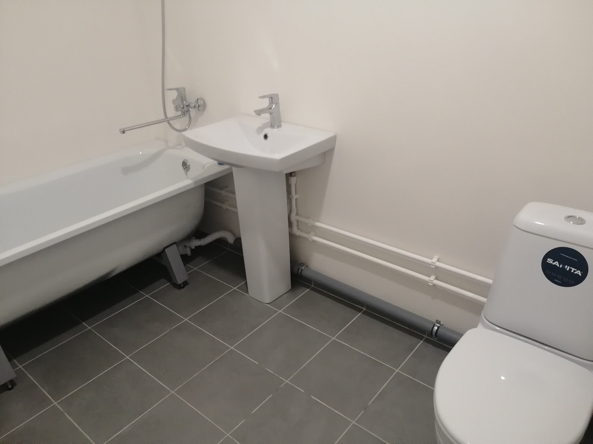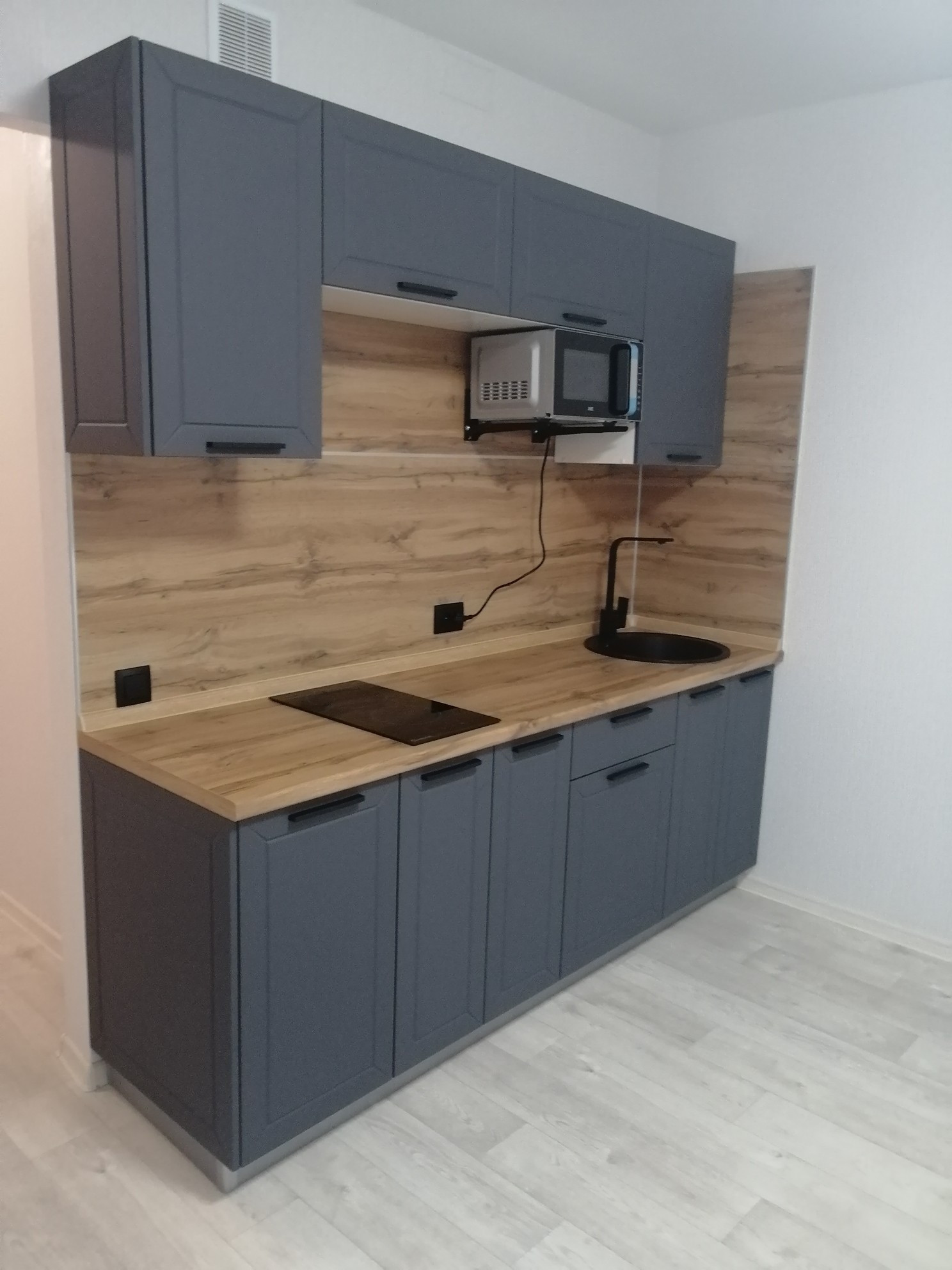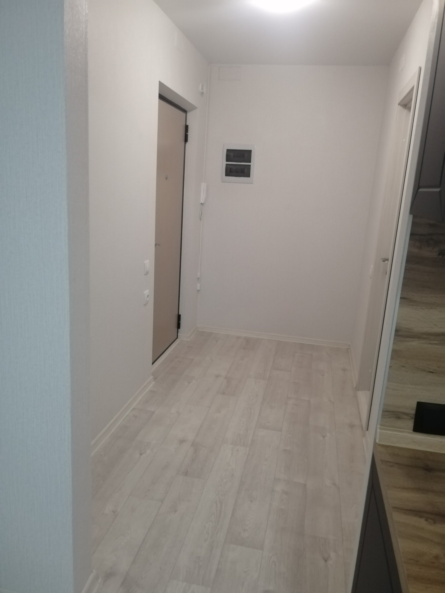 Установлен новый кухонный гарнитур, всё остаётся новому владельцу. Улучшенная отделка под ключ: линолеум под ламинат, флизелиновые светлые обои, межкомнатная дверь 3D ламинированная, натяжные потолки, застекленный балкон, входная металлическая дверь, домофон, пластиковые окна, современная сантехника.