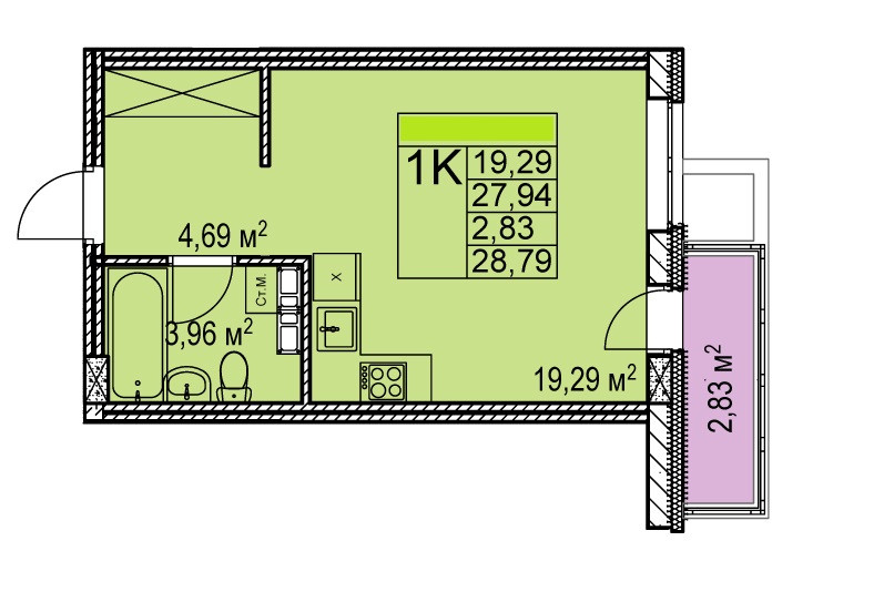 Общая площадь 30.8 м2