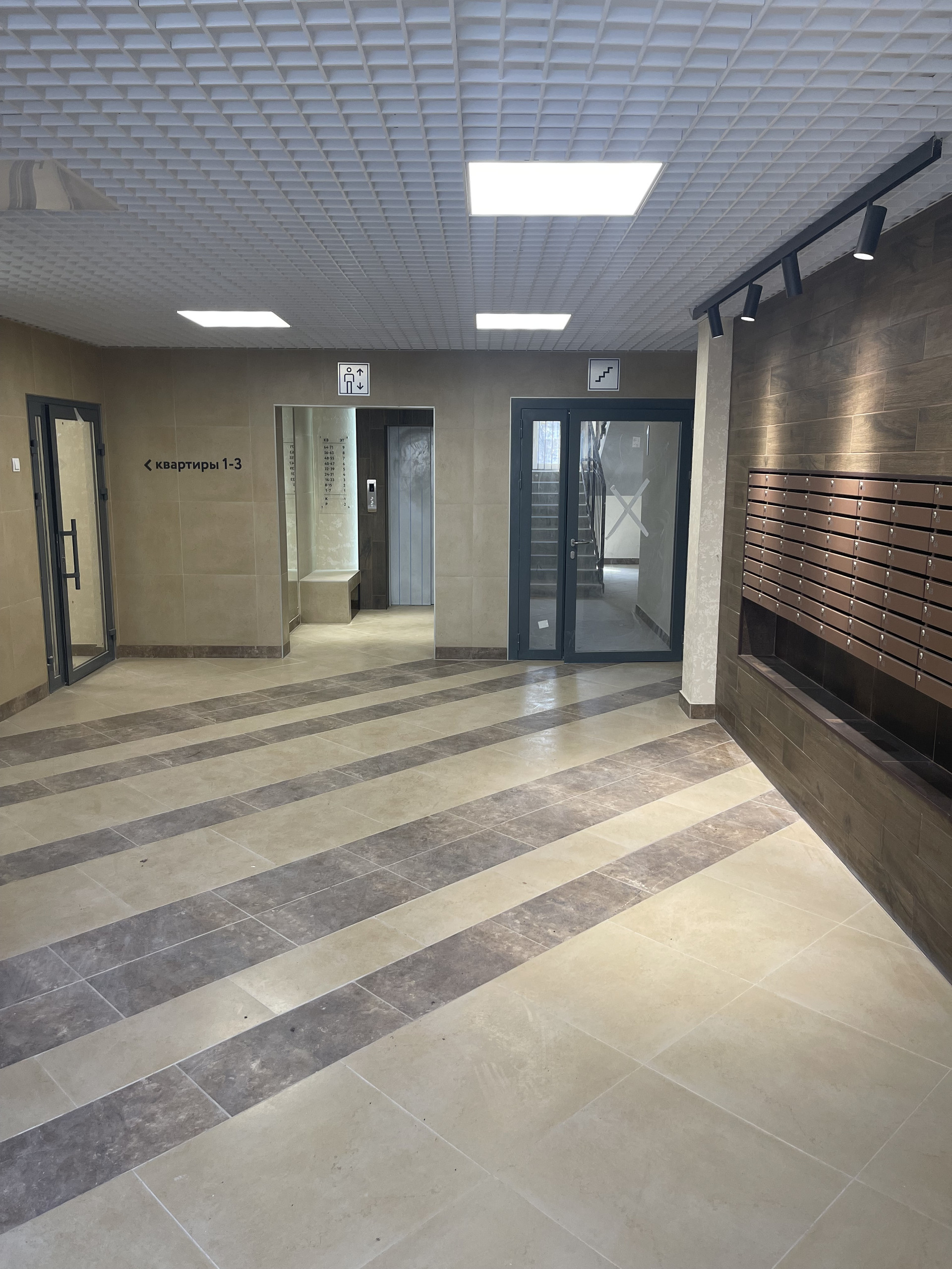 Дизайнерская чистовая отделка входных групп и лифтовых холлов.