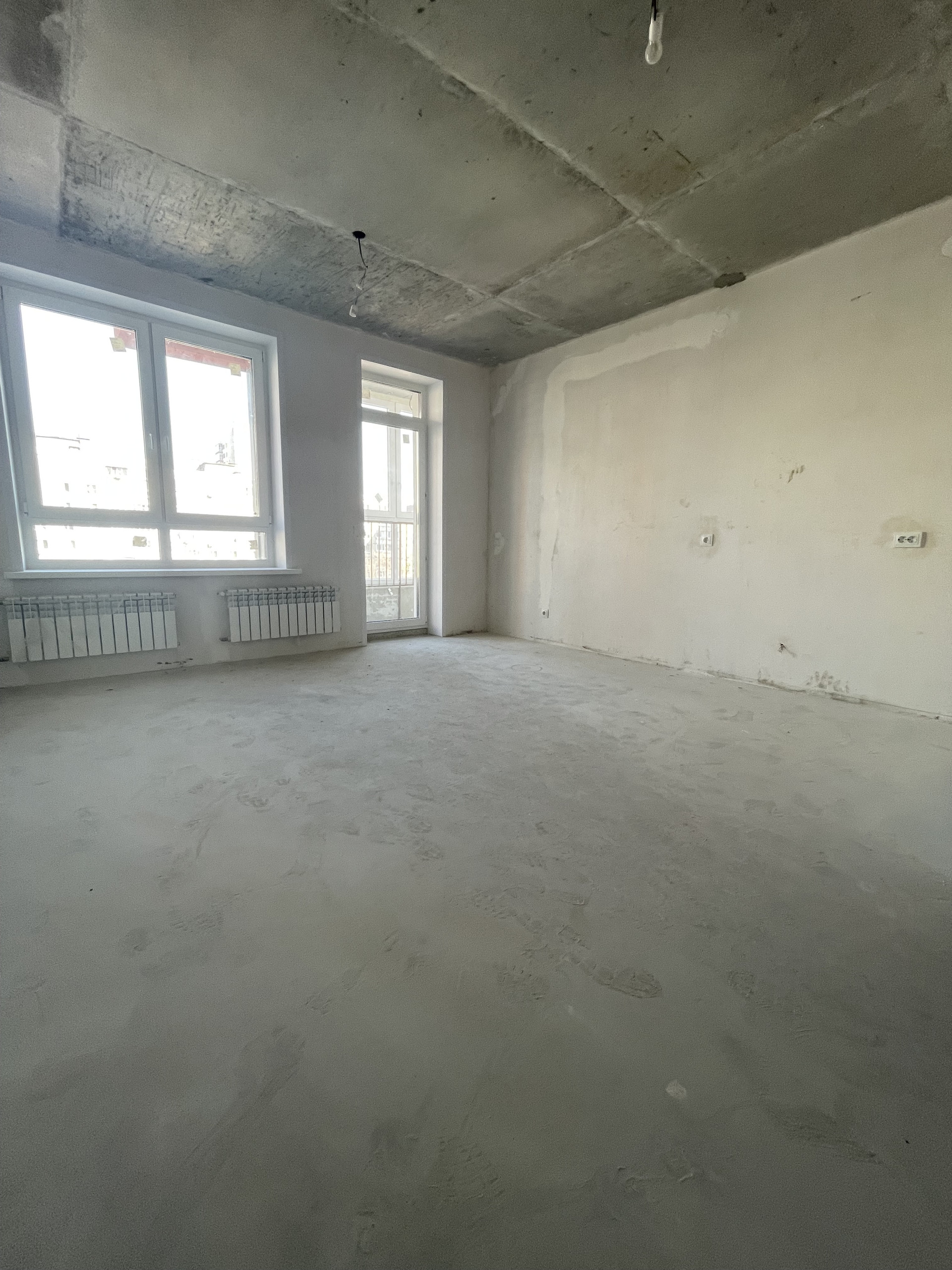 Квартира сдаётся в предчистовой отделке: с выровненными и оштукатуренными стенами и полом на цементной стяжке, в которой проложено отопление ( эффект “отсутствия” труб).