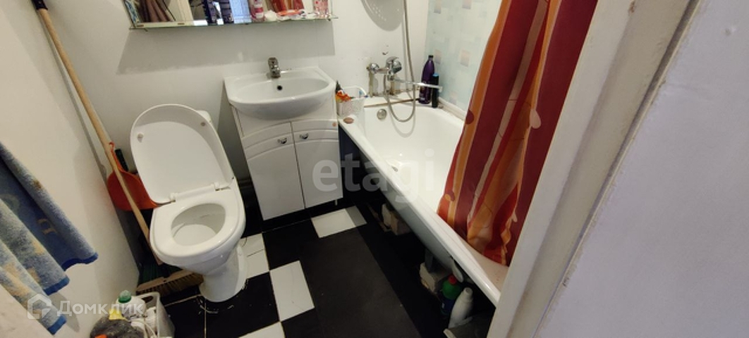 Санузел совмещенный в плитке. В коридоре шкаф встроенный. В квартире новая проводка, радиаторы, водопроводные трубы. Остается кухонный гарнитур, диван.