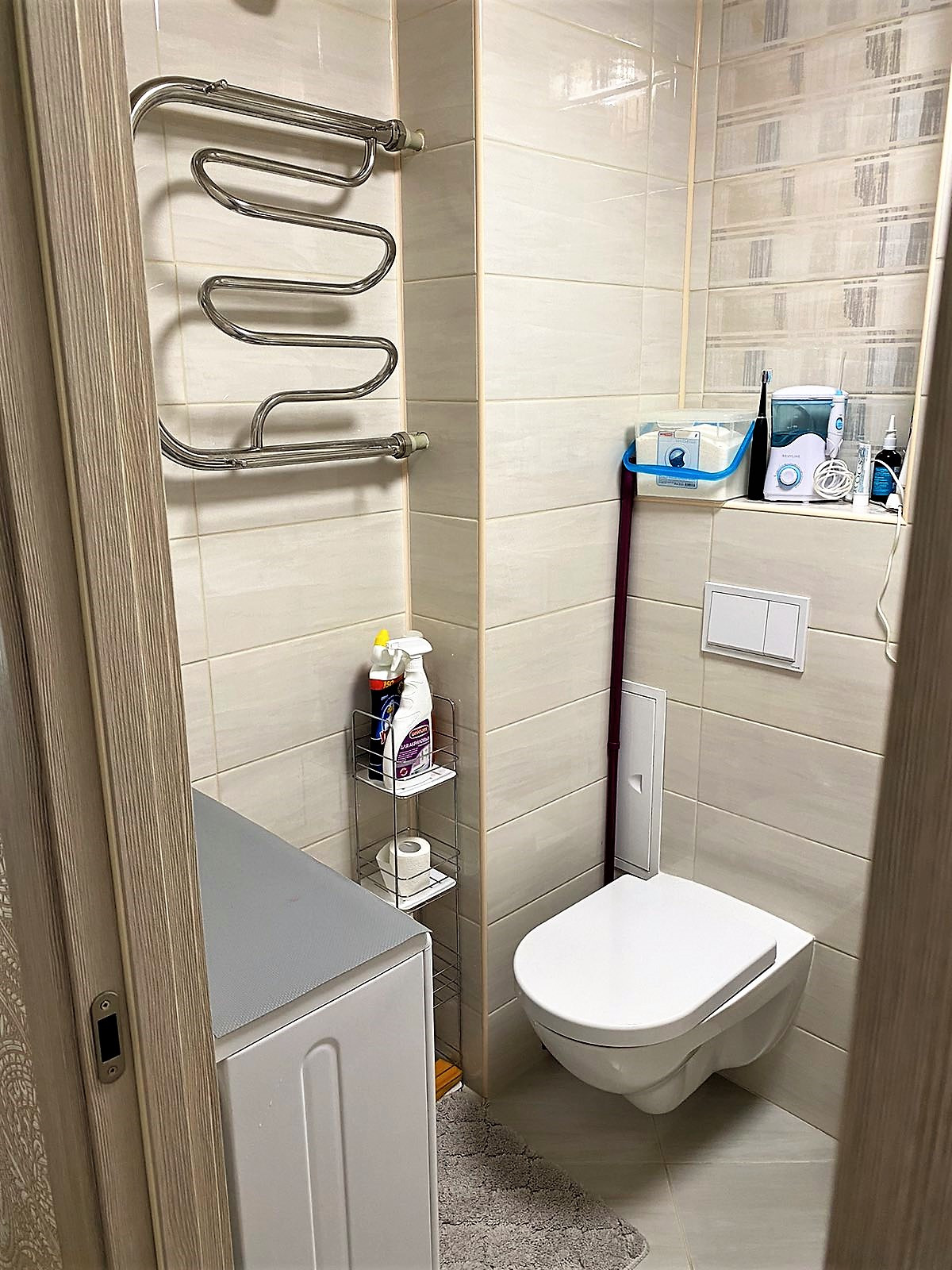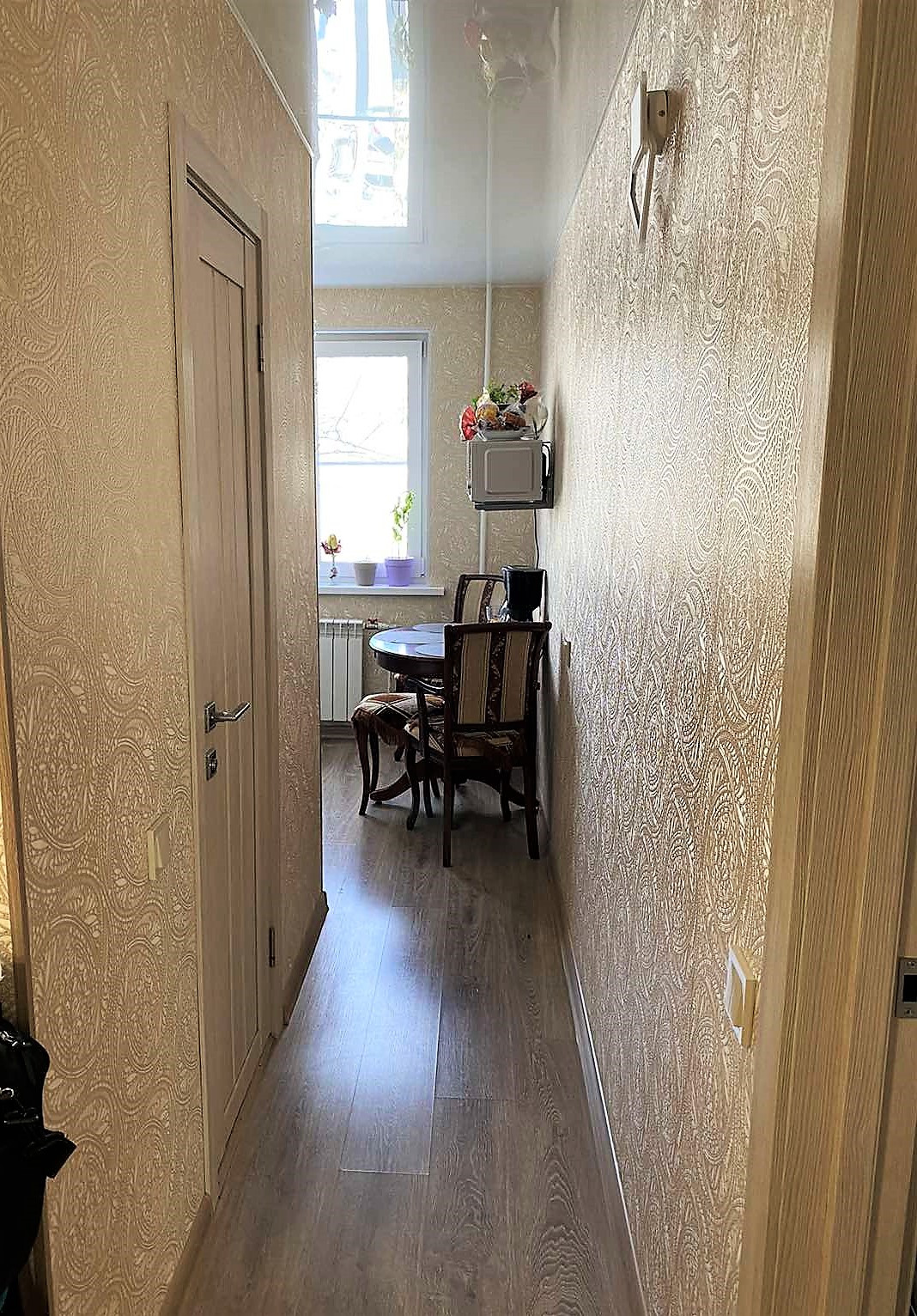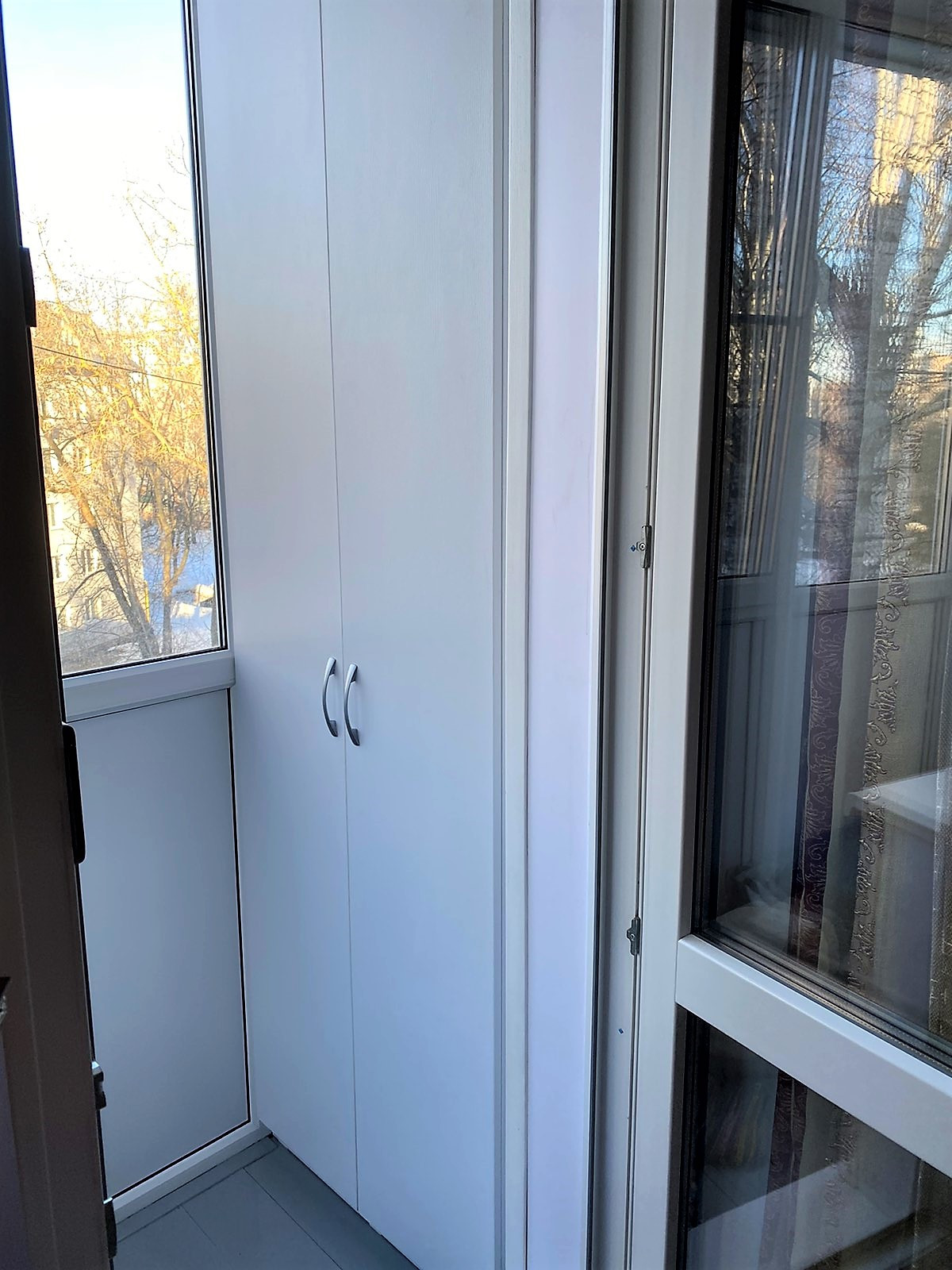 очень качественная дорогая входная дверь, с/у в качественной плитке ) .Сделан балкон с встроенным шкафом для хранения .   .