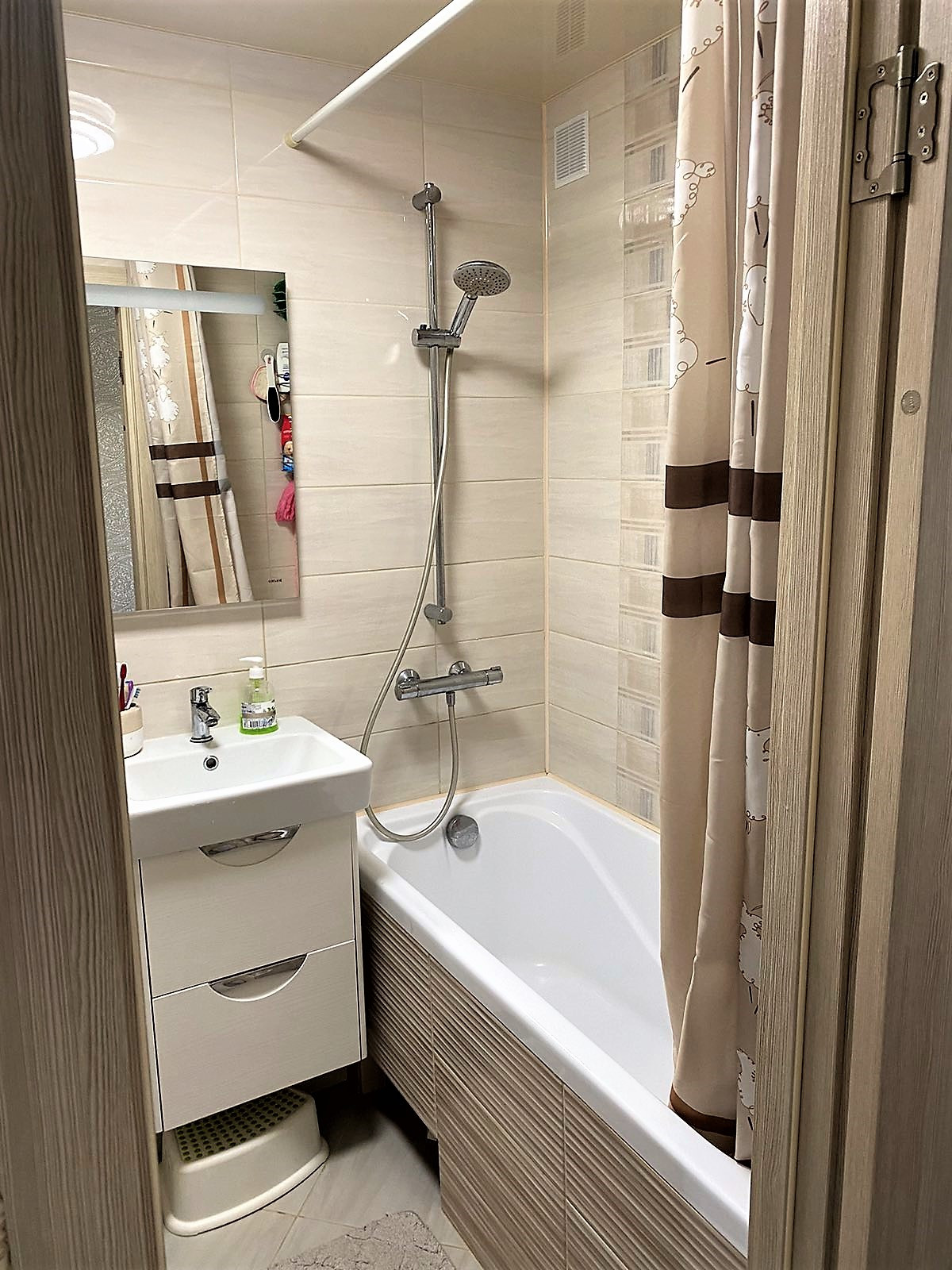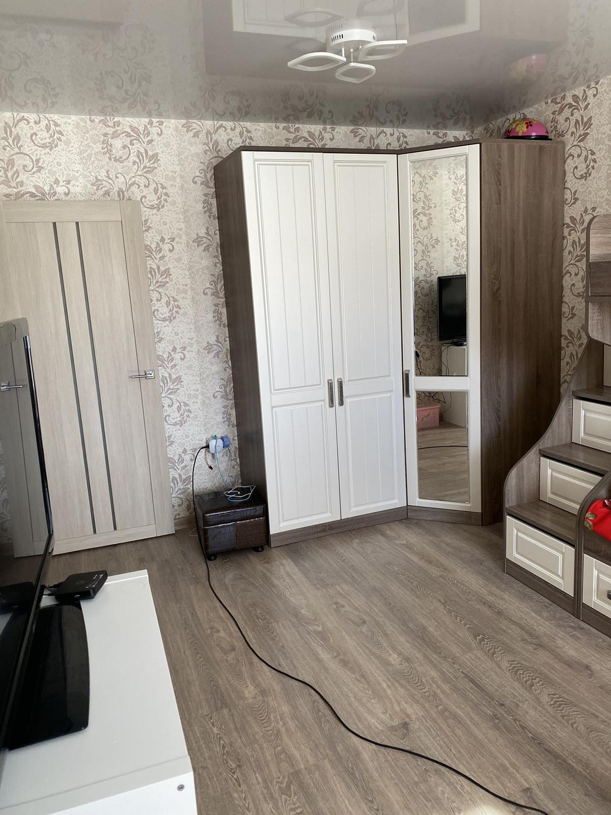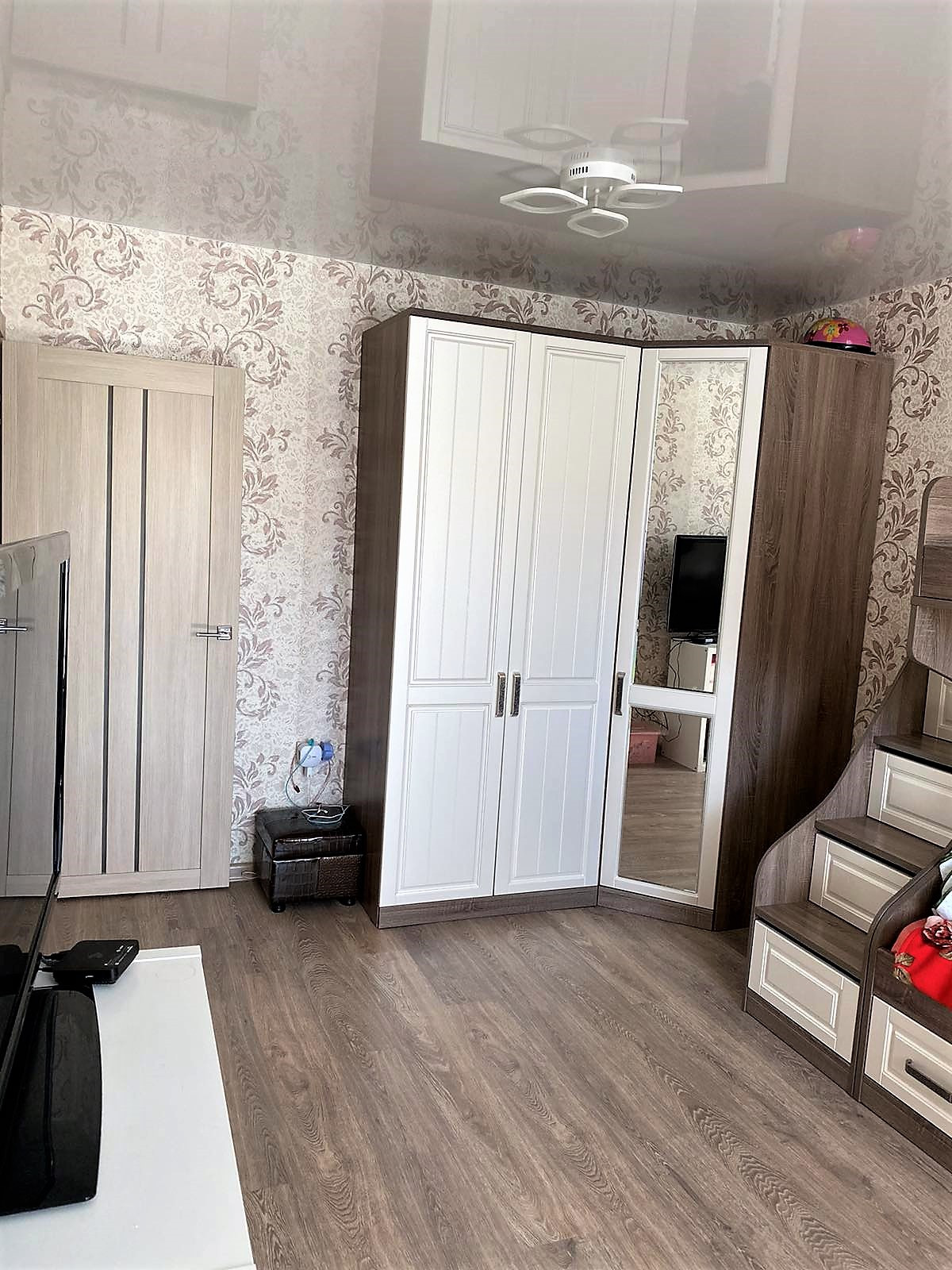 очень качественная дорогая входная дверь, с/у в качественной плитке ) .Сделан балкон с встроенным шкафом для хранения .   .