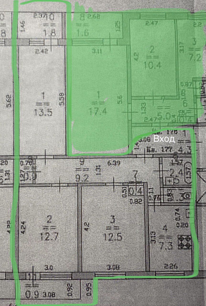 Жилая площадь 38.7 м2