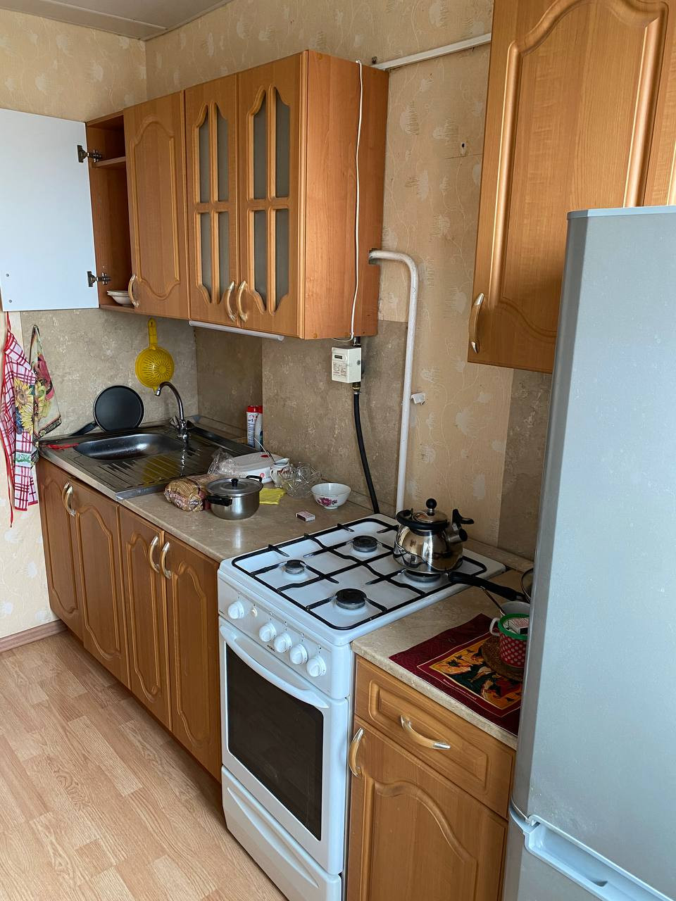 Кухонный гарнитур и газовую плиту оставляю (при желании покупателя – быстро демонтирую).