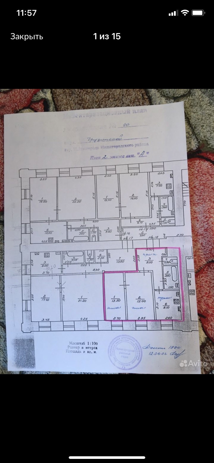 2-комнатная квартира, 54 м2, этаж 2 / 3, на продажу в Нижнем Новгороде, Грузинская улица, 40