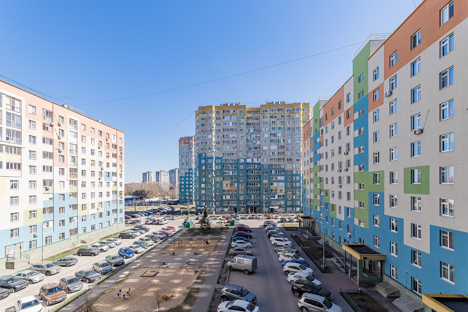 Рядом вся необходимая инфраструктура: торговый центр с магазинами, детский сад, в шаговой доступности Автозаводский парк, несколько озер, спортивные и детские площадки.