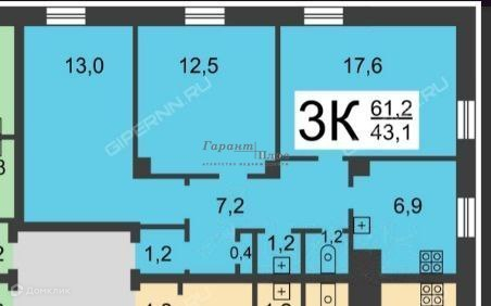 Общая площадь 61 м2