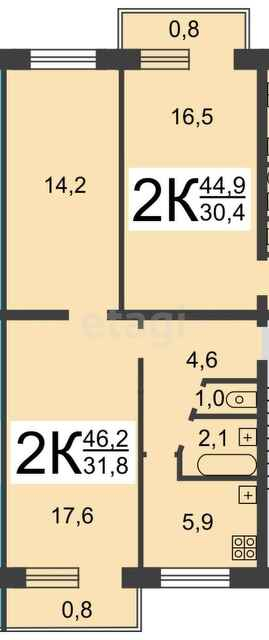 Общая площадь 46.2 м2