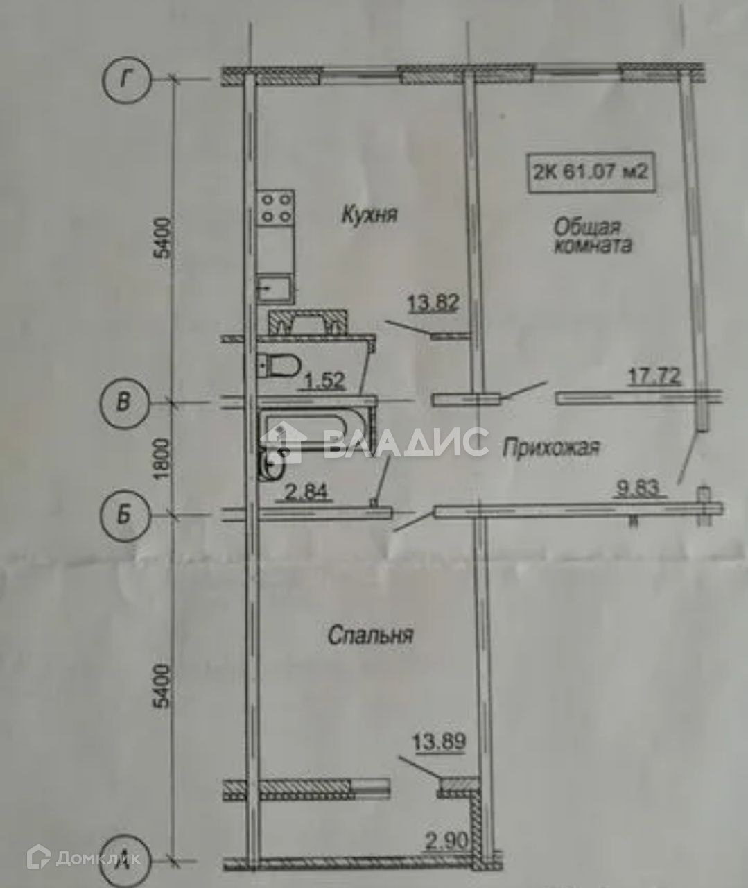 Общая площадь 61.07 м2