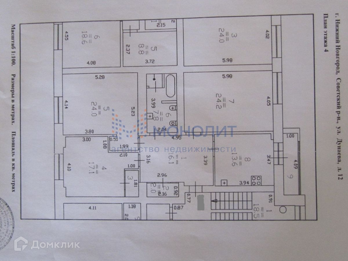 3-комнатная квартира, 110.7 м2, этаж 4 / 7, на продажу в Нижнем Новгороде, улица Дунаева, 12