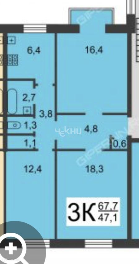 Общая площадь 67.8 м2