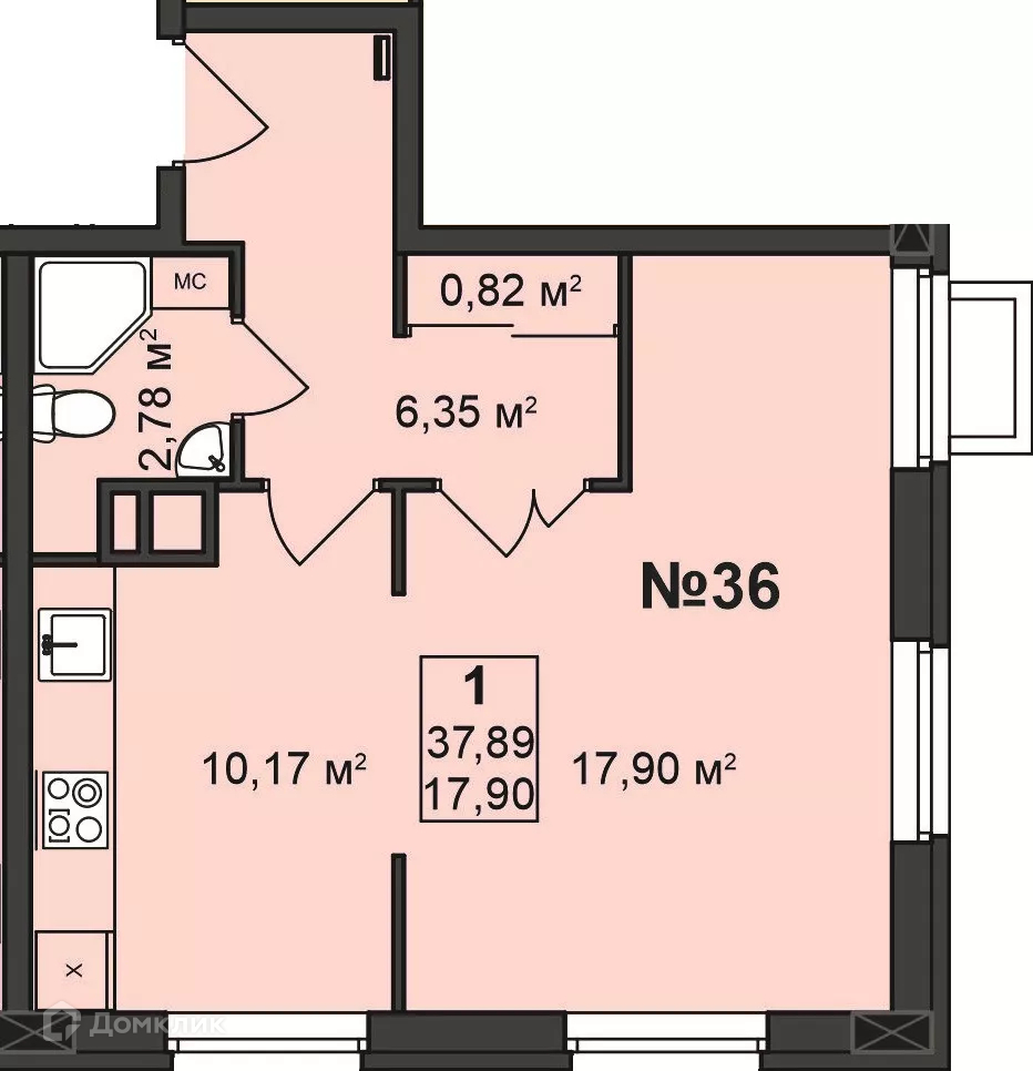 Общая площадь 37.89 м2