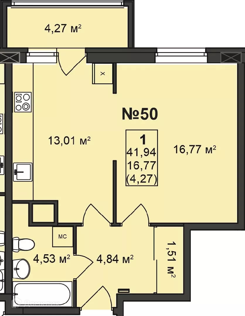 Общая площадь 41.94 м2