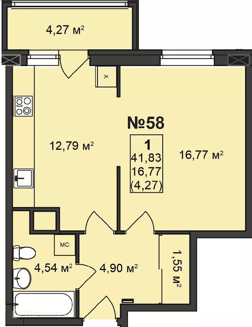 Общая площадь 41.83 м2