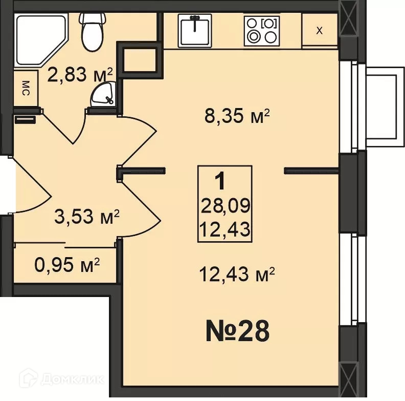 Общая площадь 28.09 м2