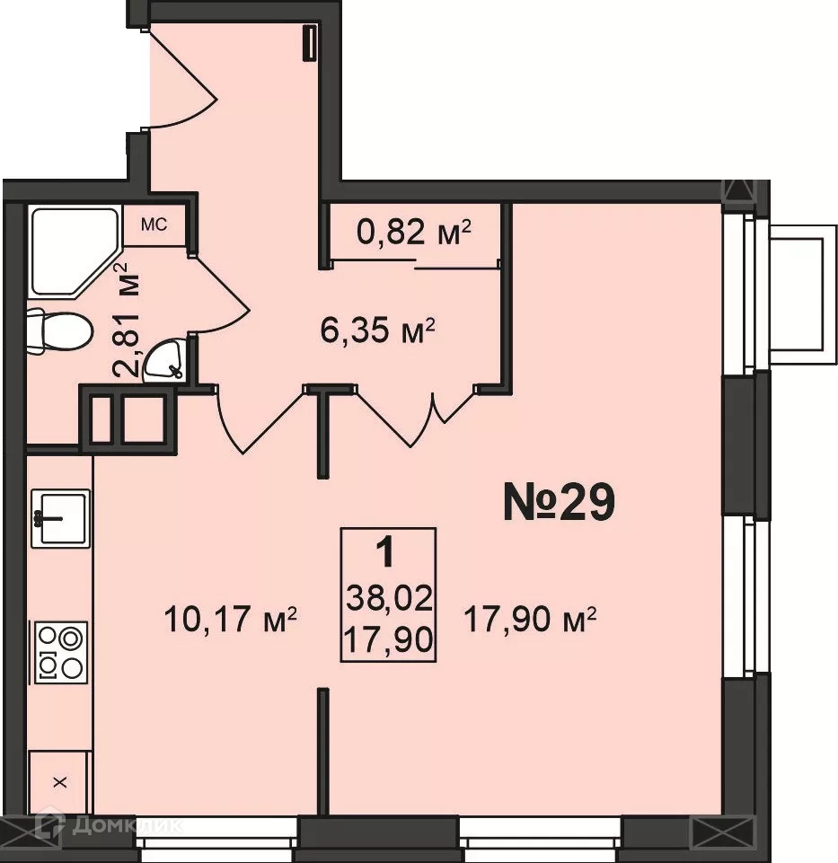 Общая площадь 38.05 м2