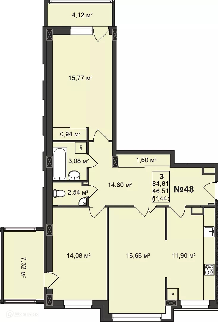 Общая площадь 84.81 м2