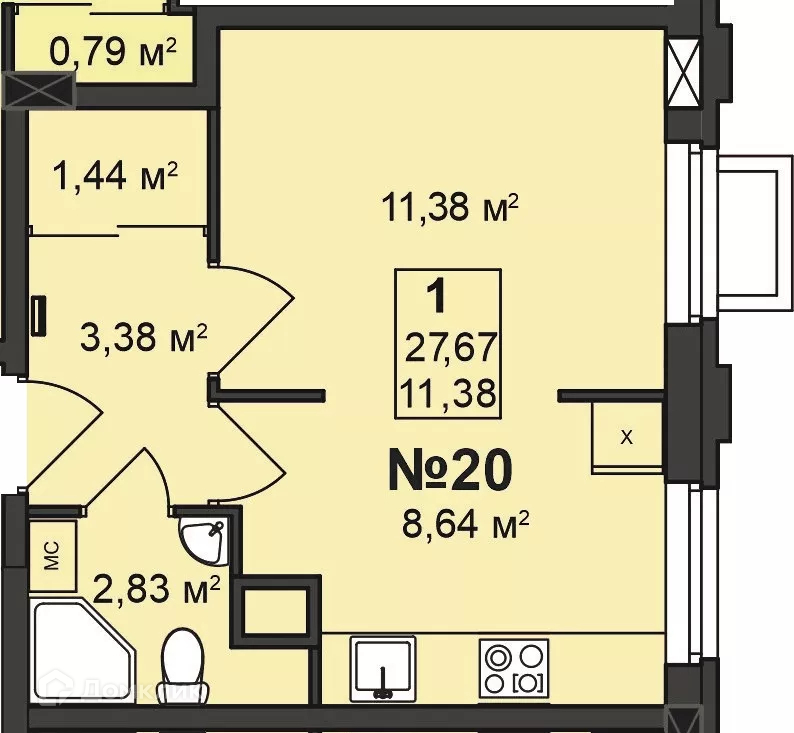 Общая площадь 27.67 м2