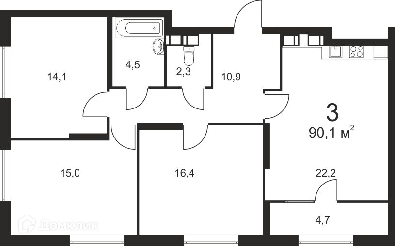 Общая площадь 90.1 м2
