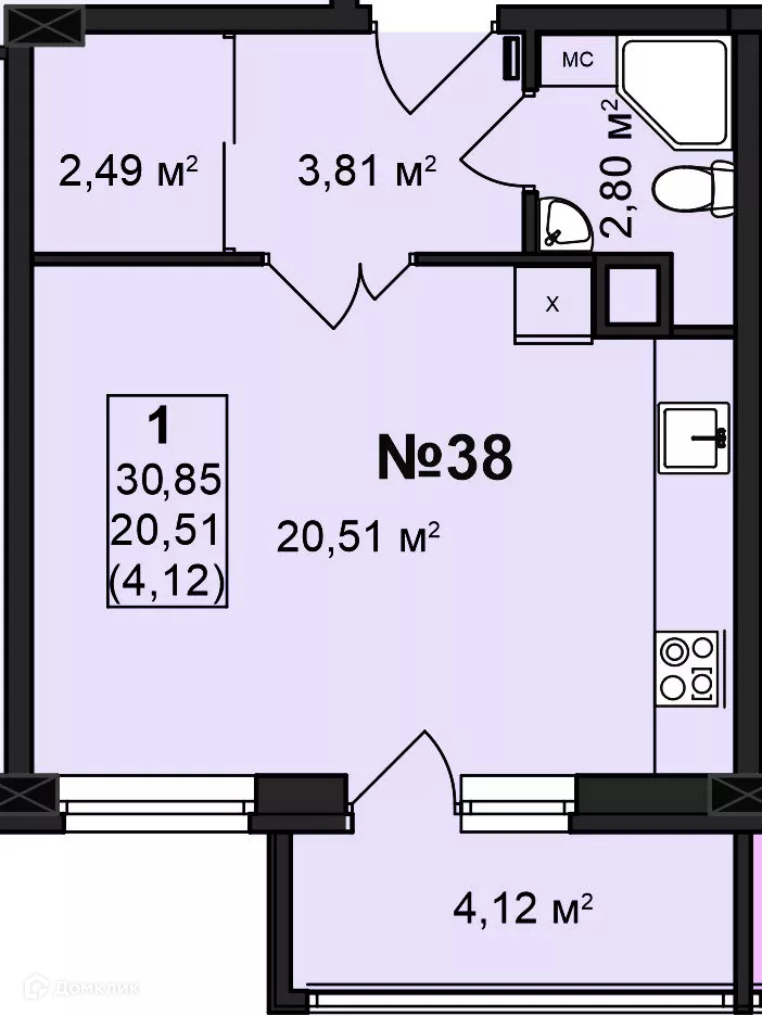 Общая площадь 30.85 м2