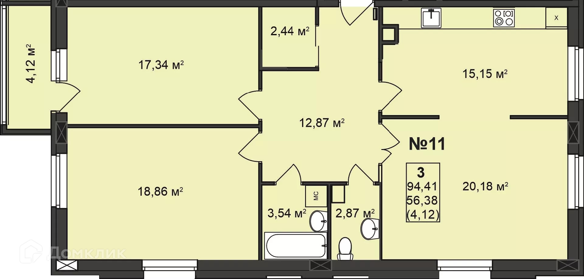Общая площадь 94.41 м2