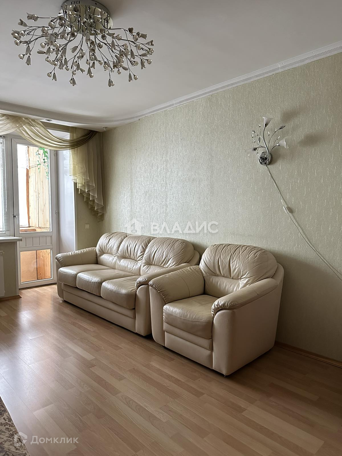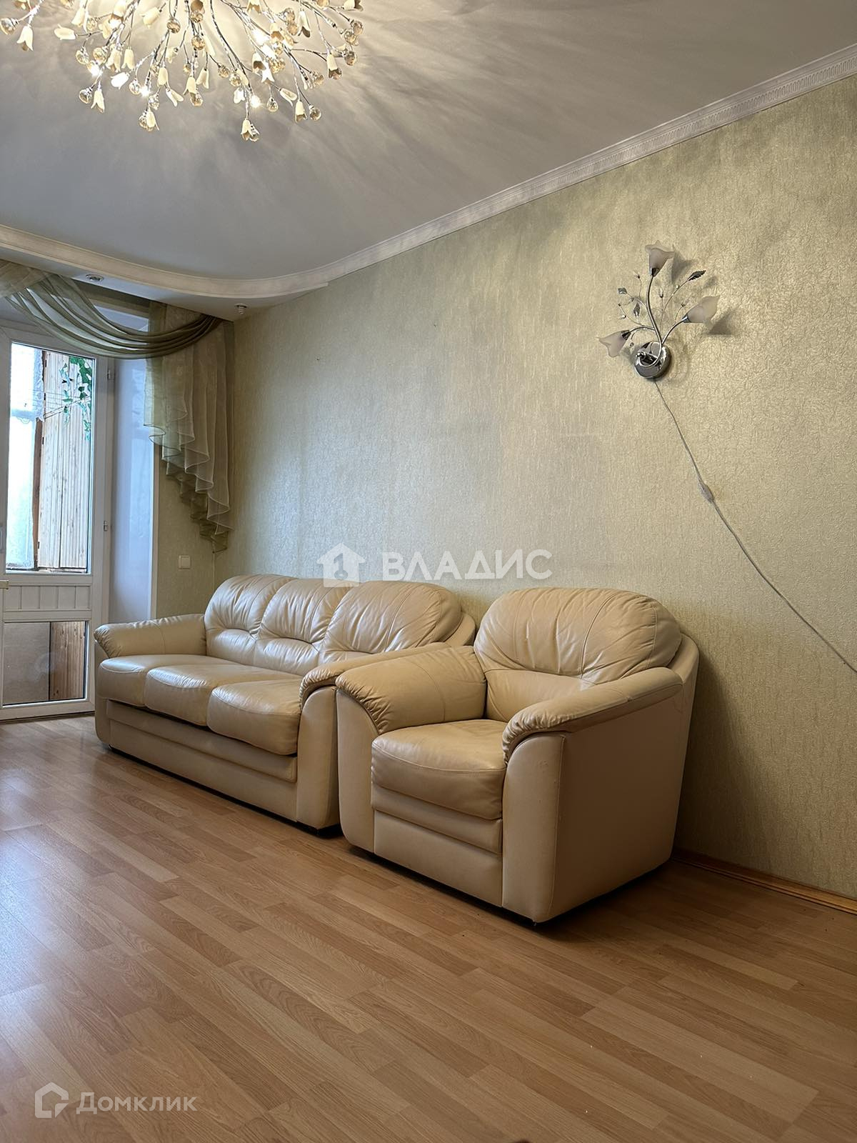 Окна, двери, на кухне и прихожей светлая плитка под ламинат, в комнатах светлый ламинат.