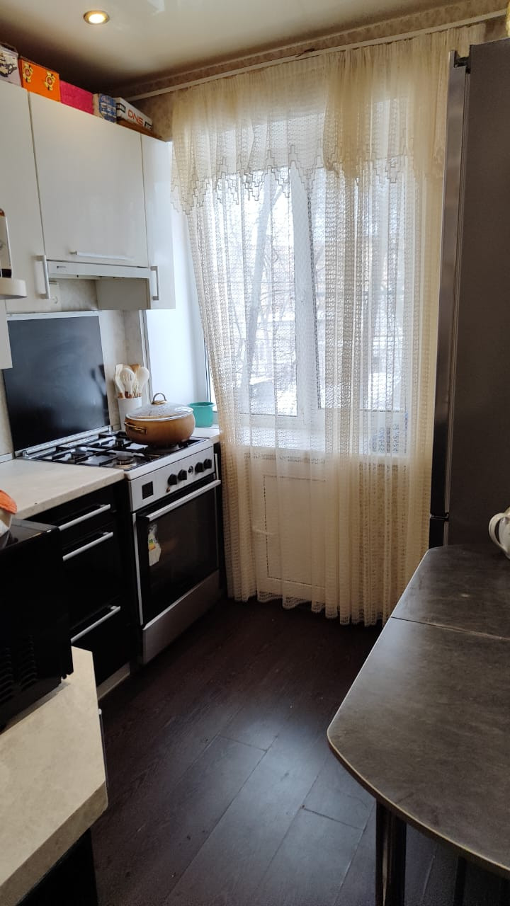 Кухня 6,5 м2, естественный холодильник в стене под окном, кухонный гарнитур остается в подарок новым собственникам!