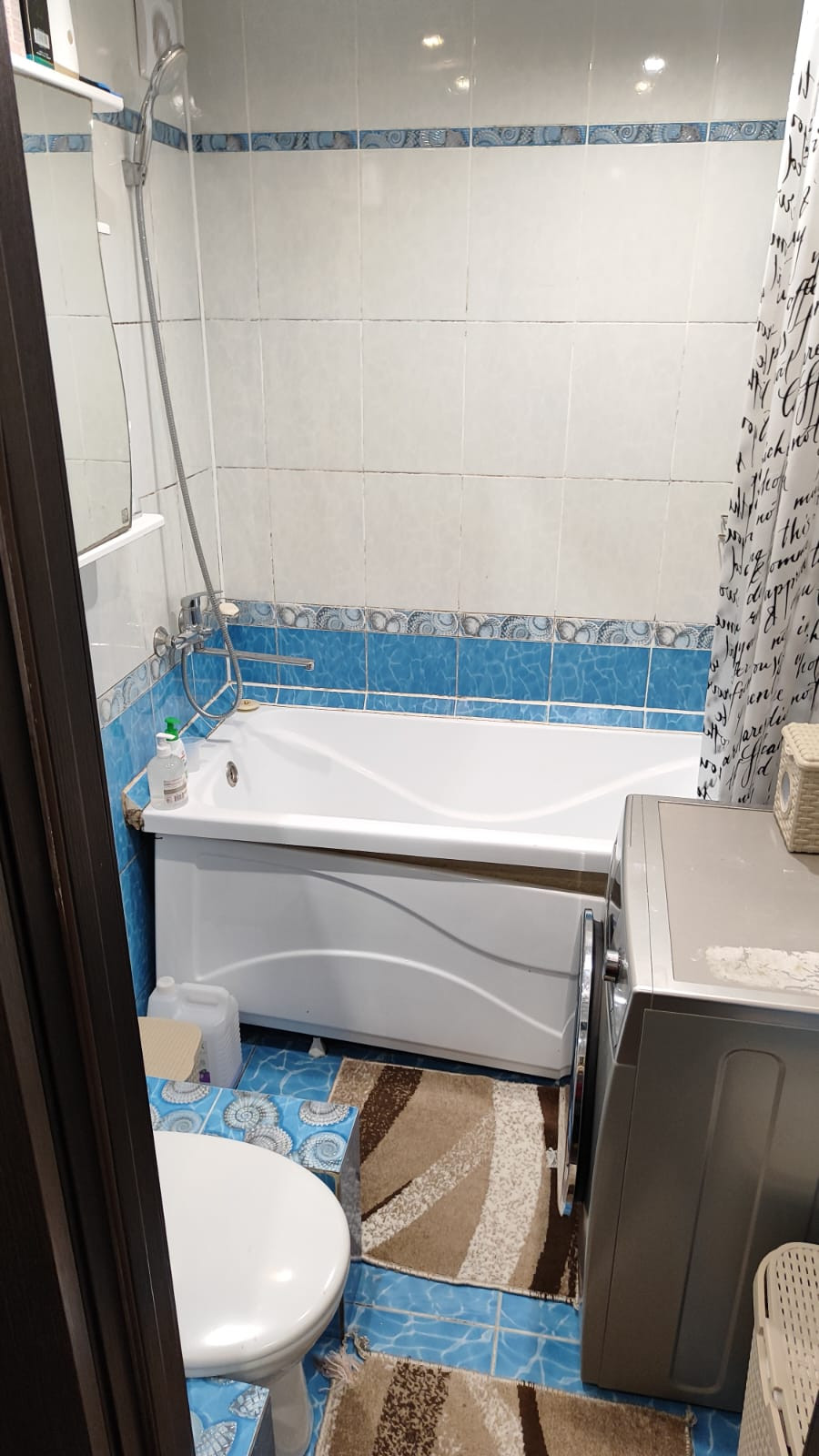 Сан/узел совмещенный просторный, плитка на полу и на стенах