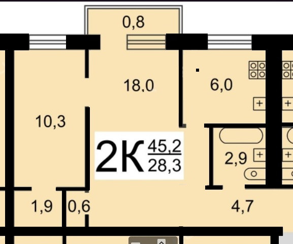 Общая площадь 45.2 м2