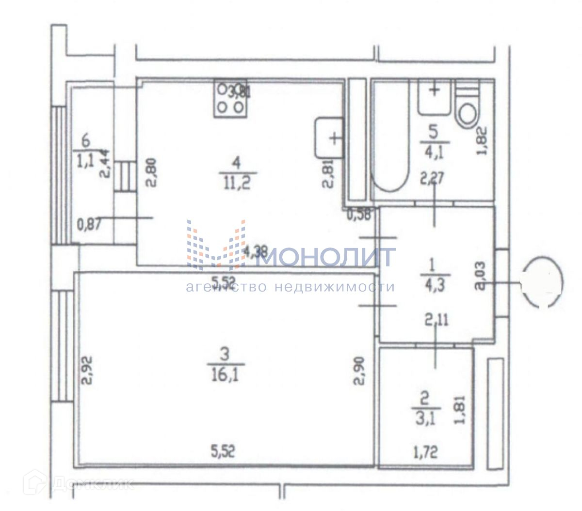 Жилая площадь 16.1 м2