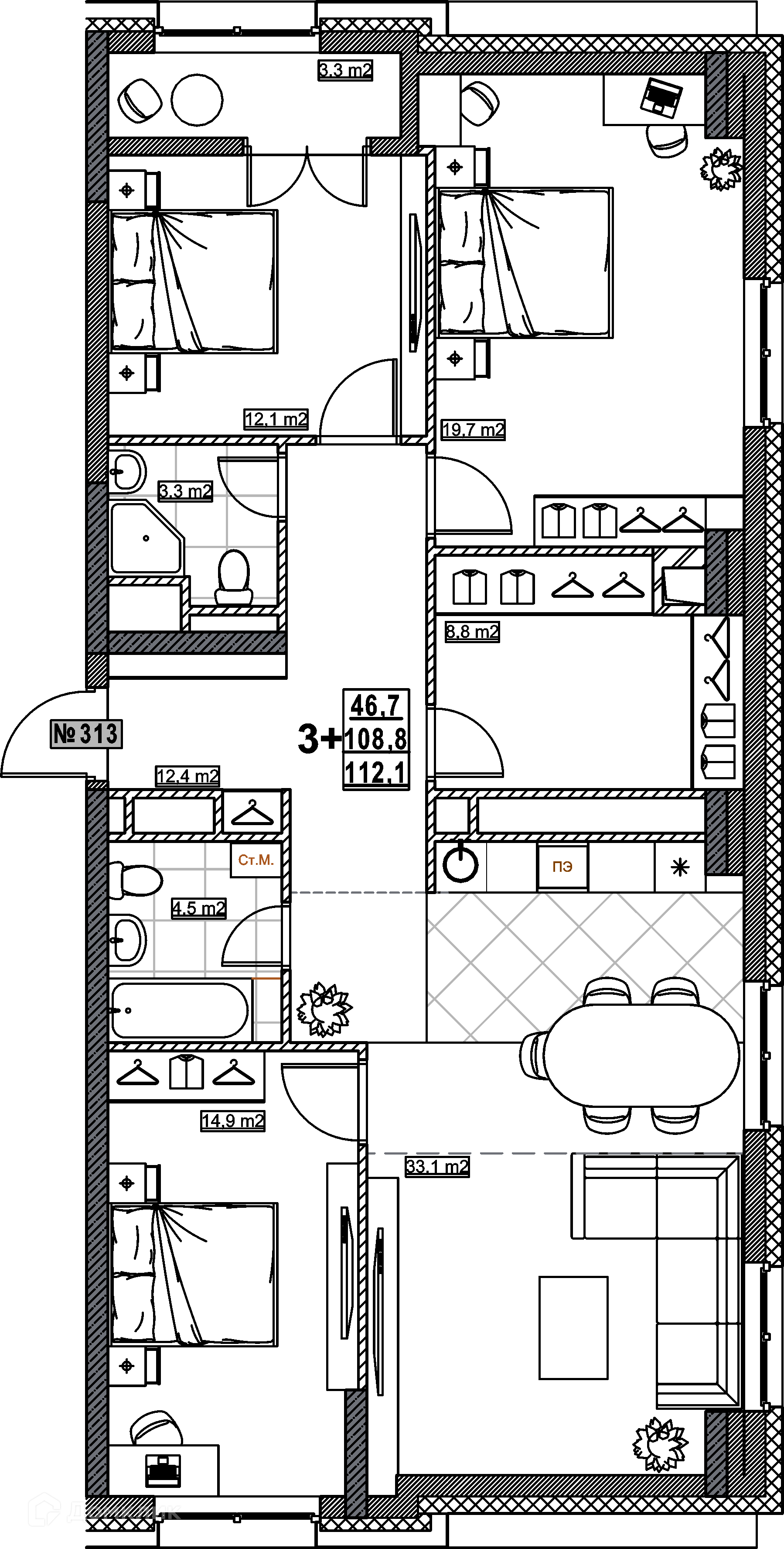 Общая площадь 112.1 м2
