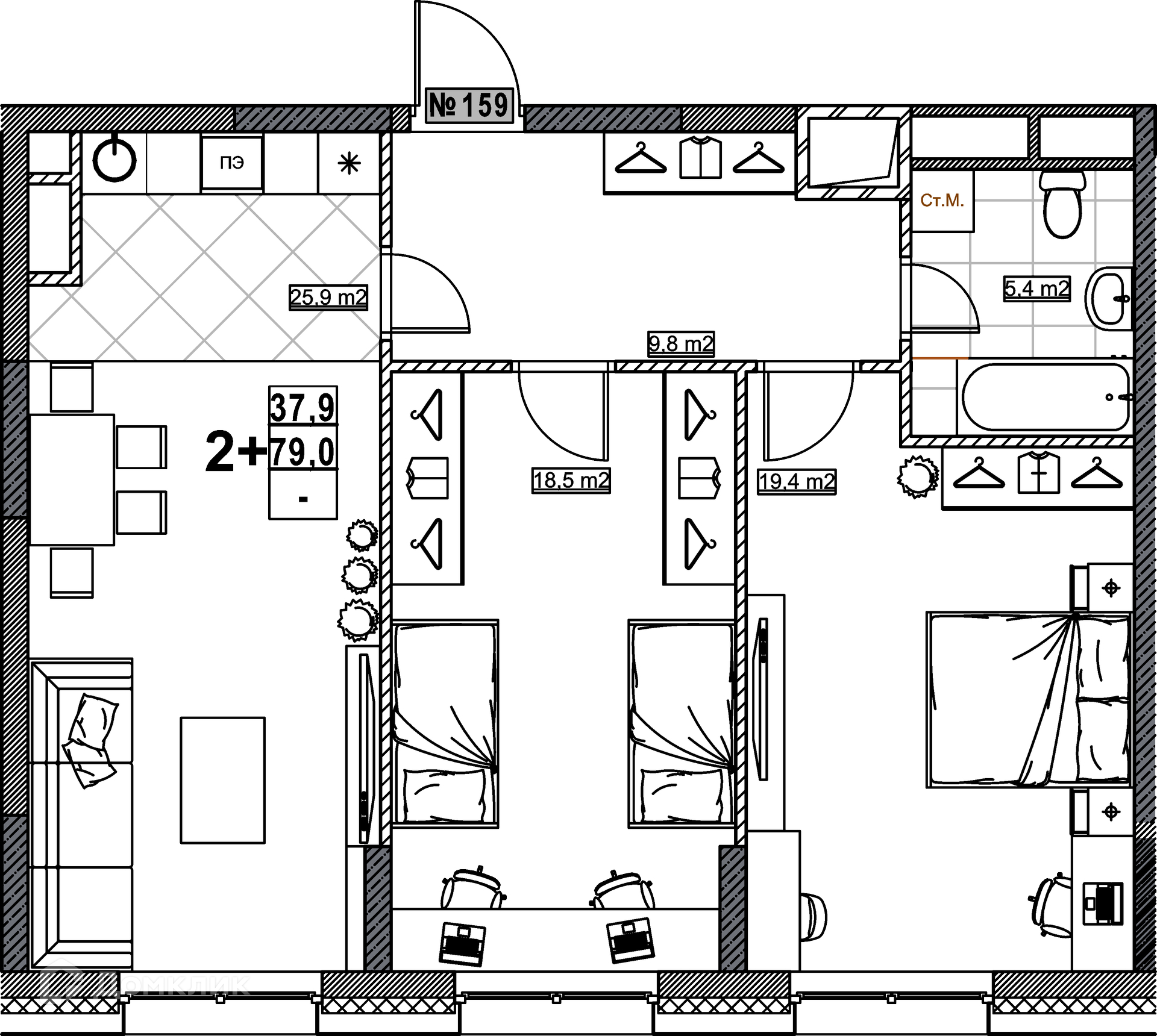 Общая площадь 79 м2