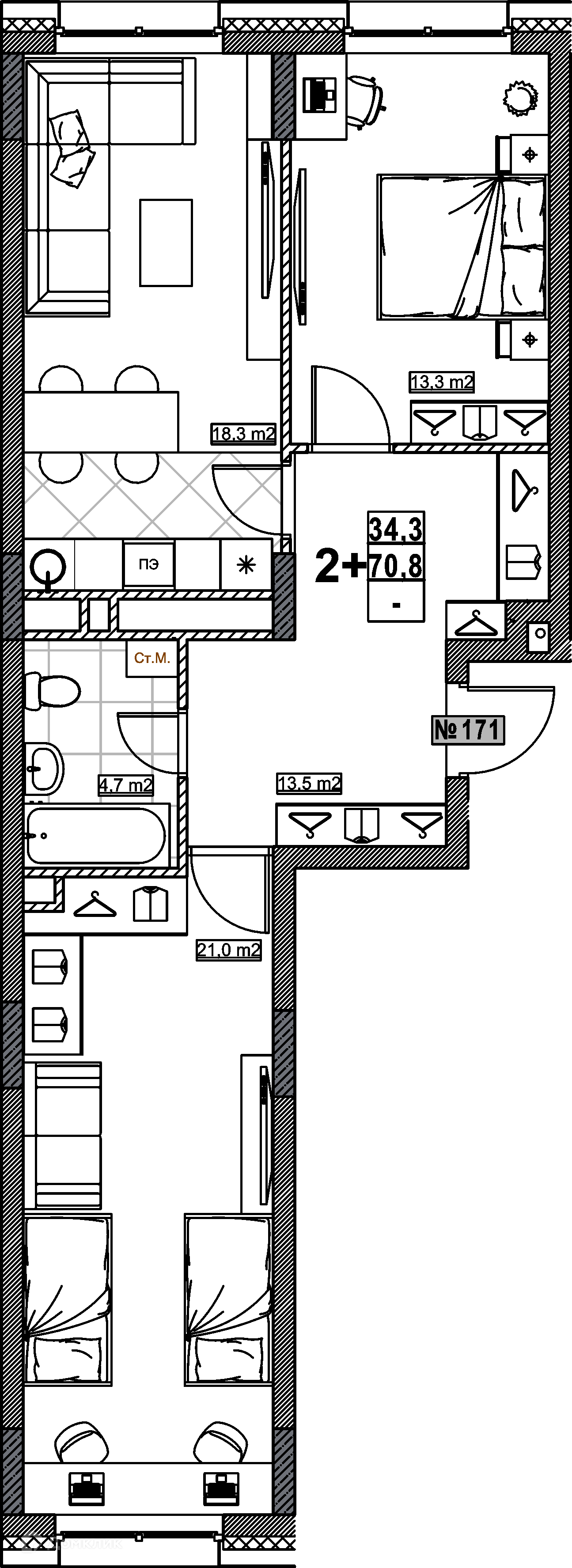 Общая площадь 70.8 м2