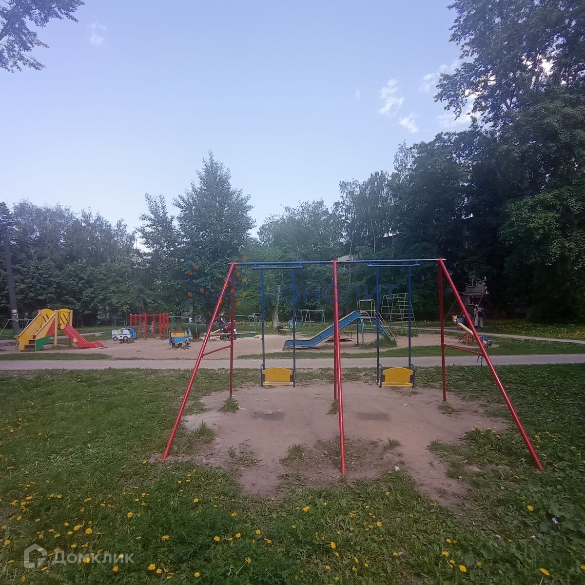 Вид из окон во двор, на детскую площадку.
