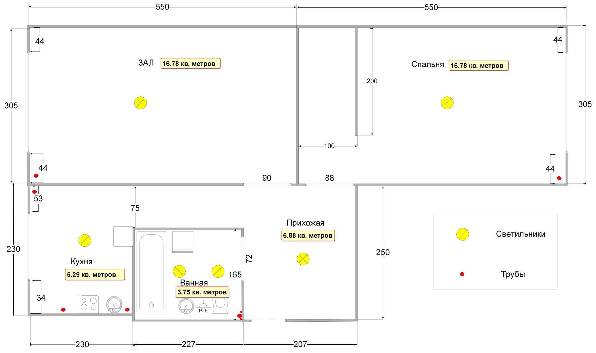 В квартире предусмотрено создание нескольких рабочих мест для которых выведена локальная сеть и розетки (2+ в зале и 1 в спальне).